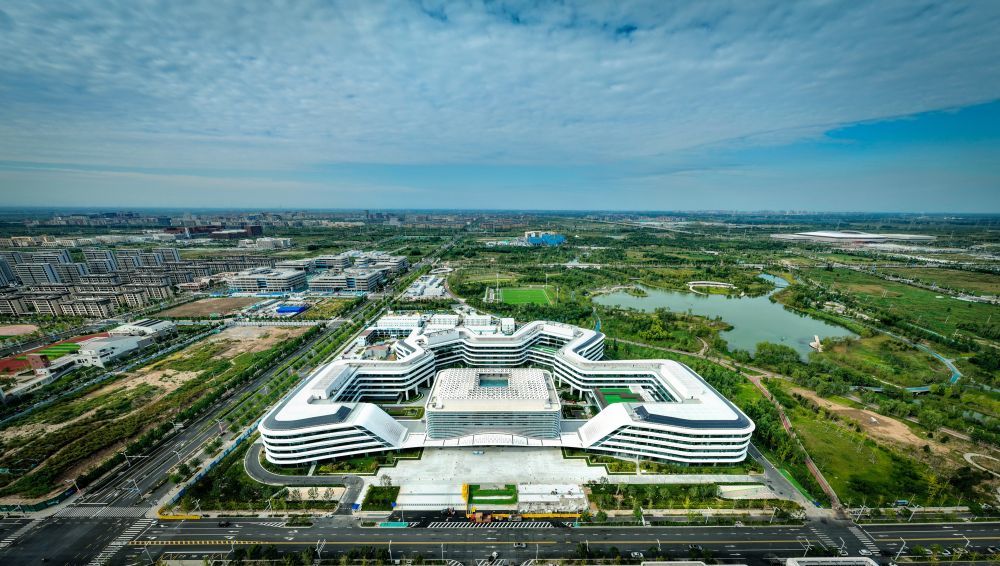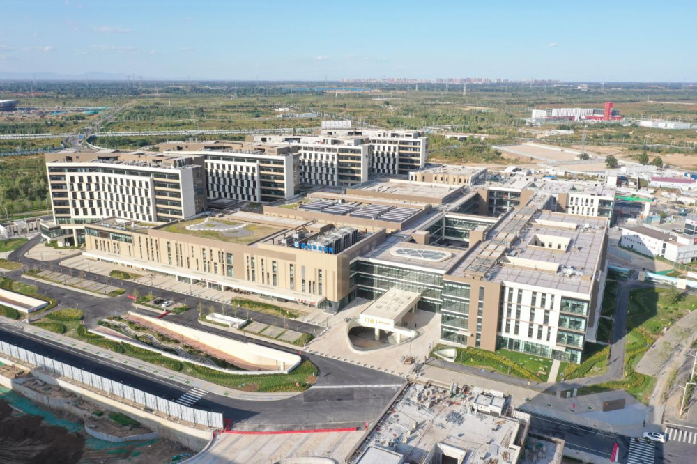 2023年6月30日,中央政治局召开会议,审议《关于支持高标准高质量建设雄安新区若干政策措施的意见》。此后,一揽子特殊支持政策陆续落地雄安新区。2023年10月16日,雄安宣武医院开诊。首都医科大学宣武医院派来管理团队及骨干医生,重点服务疏解人员和新区群众,并辐射京津冀地区。这是2023年9月30日拍摄的雄安宣武医院(无人机照片)。