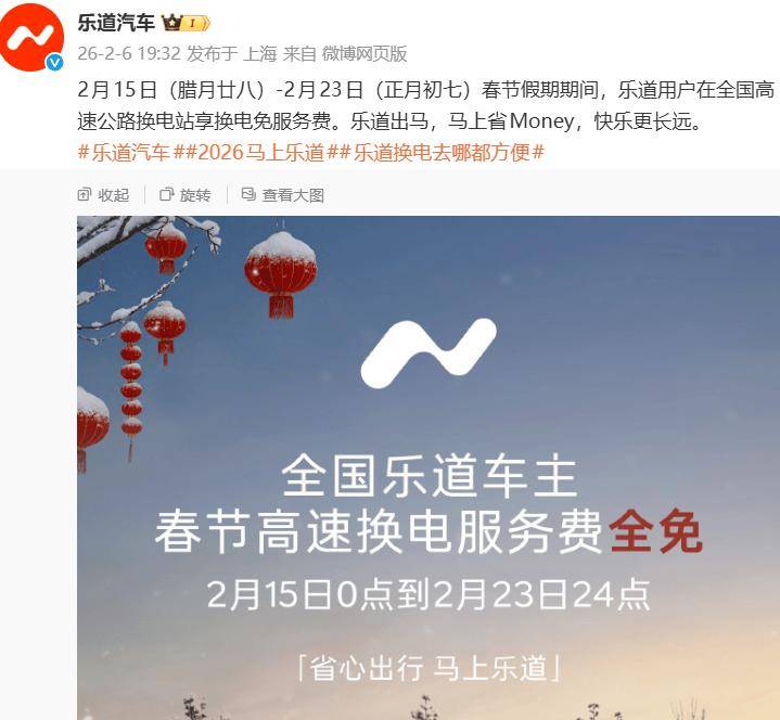 点击次数: AC米兰·(中文)官方网站-Milan brand-2月15日(腊月廿八)-2月23日(正月初七)春节假期期间,乐道用户在全国高速公路换电站享换电免服务费。